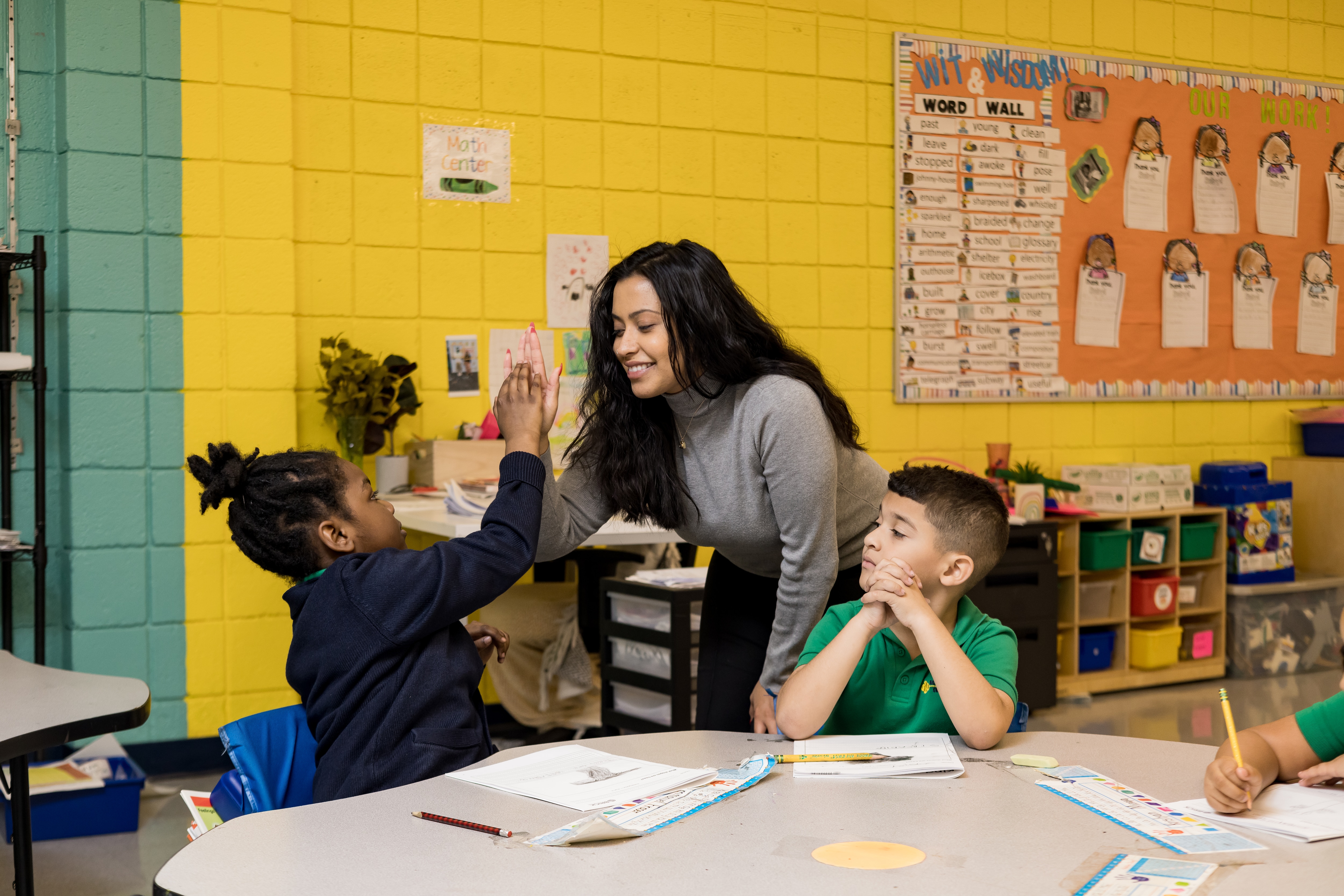 Teacher high fiving student